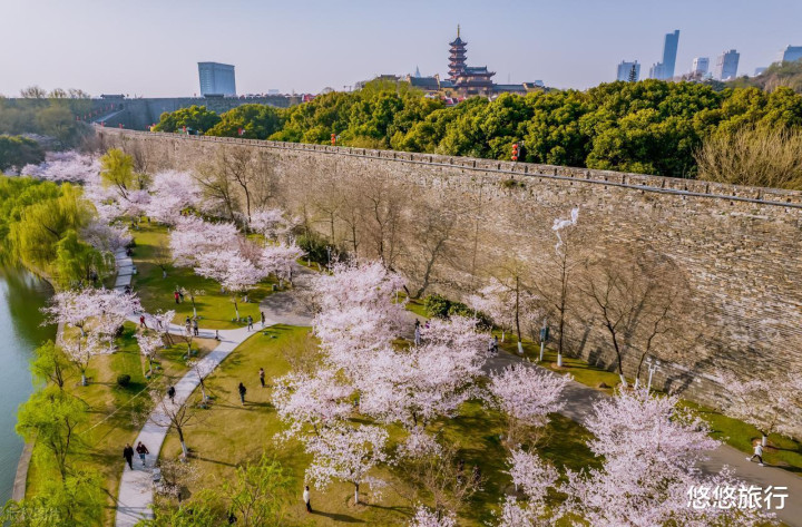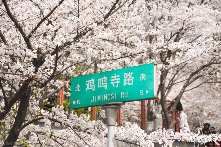 鸡鸣寺路古寺粉樱交汇,夜樱别具风情。莫愁湖公园,海棠花嘉会,垂丝海棠与古典楼阁组成江南画卷。