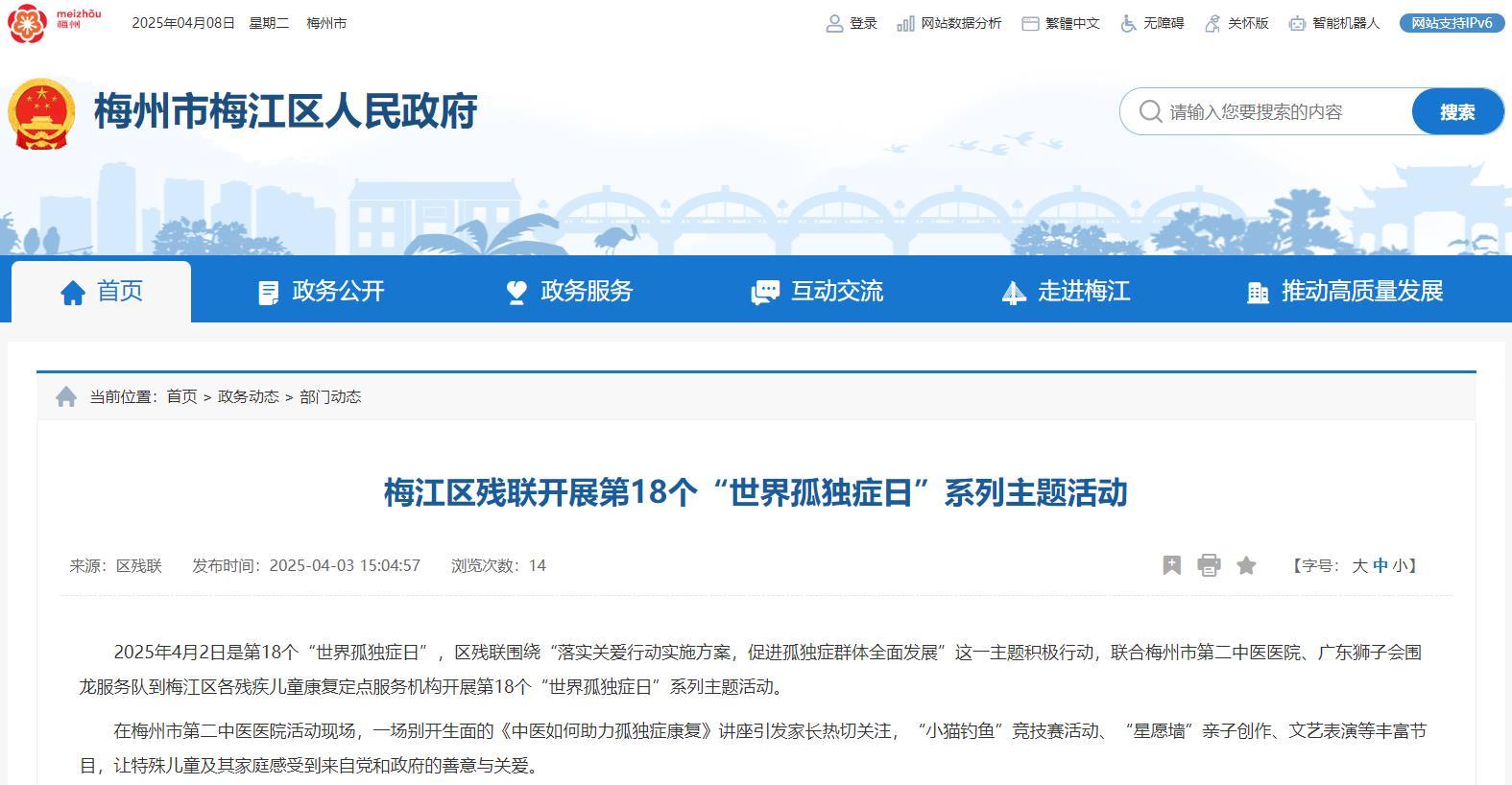 2025年4月2日是第18个“宇宙孤苦症日”,区残联围绕“落实关爱作为本质有筹划凯发·k8国际app官网,促进孤苦症群体全面发展”这一主题积极作为,统一梅州市第二中医病院、广东狮子会围龙处事队到梅江区各残疾儿童康复定点处事机构开展第18个“宇宙孤苦症日”系列主题作为。