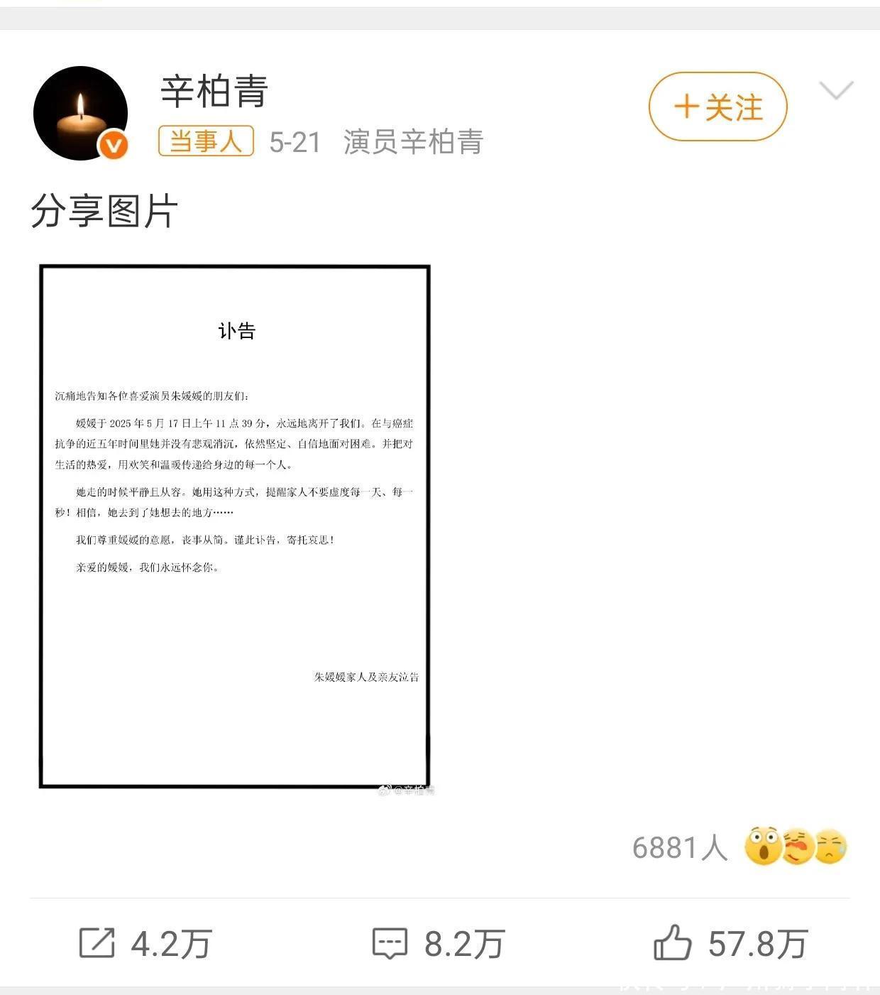 朱媛媛的圆寂,比许多老戏骨圆寂后引起了颤动还要大,因为太多明星自觉的吊祭朱媛媛了,朱媛媛和辛柏青从前在中戏的老同学们也齐发声了,从他们的发声中能看出,朱媛媛和辛柏青黑白常好的两个东说念主,因为他们豪侈好,对东说念主也豪侈的真诚,是以在朱媛媛圆寂后,圈内的其他东说念主,才会回馈他们最真诚的厚谊。