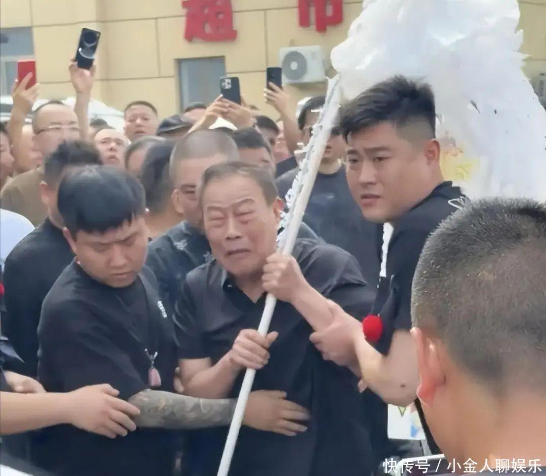 当棺木被抬起时,73岁的宗子杨威顿脚摔盆,痛喊“爸爸一齐走好”,全靠两旁亲一又架住胳背才没摔倒。