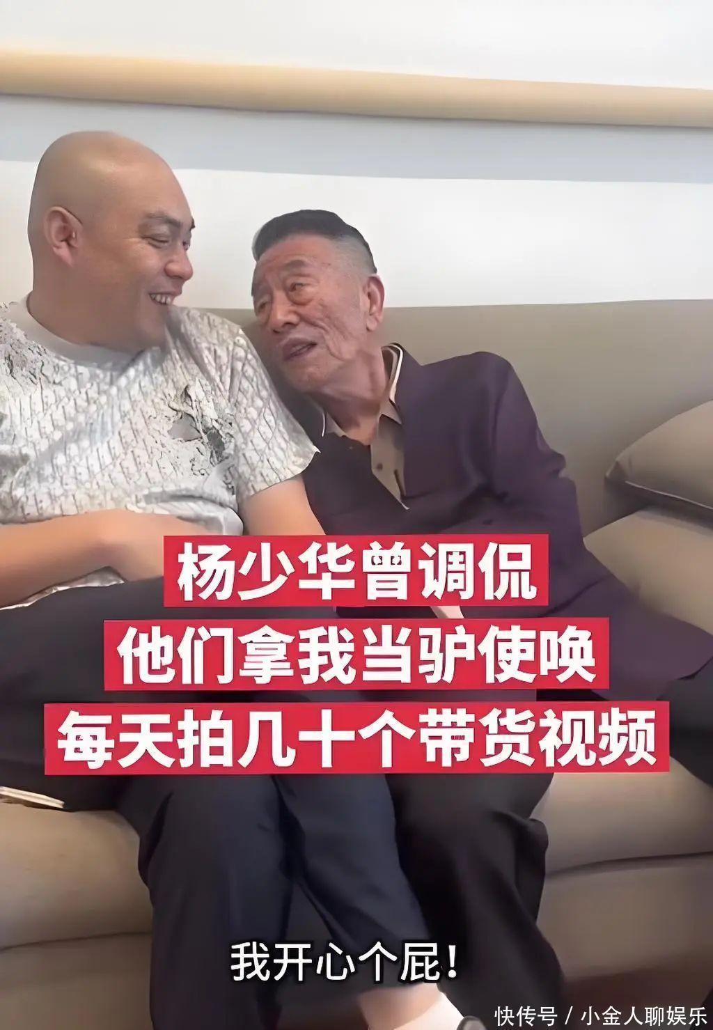 杨少华晚年常被三女儿杨伦和小女儿杨议拉着拍段子、卖货,网友直言老爷子成了“行走的支款机”。