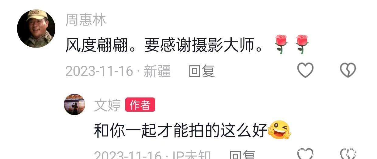 2023年11月,商文婷晒出与周惠林合影,一句“蹭了某东谈主几张”颇有点甜密的滋味,周惠林感谢影相大家,商文婷却说,和周惠林一谈才调拍的这样好。