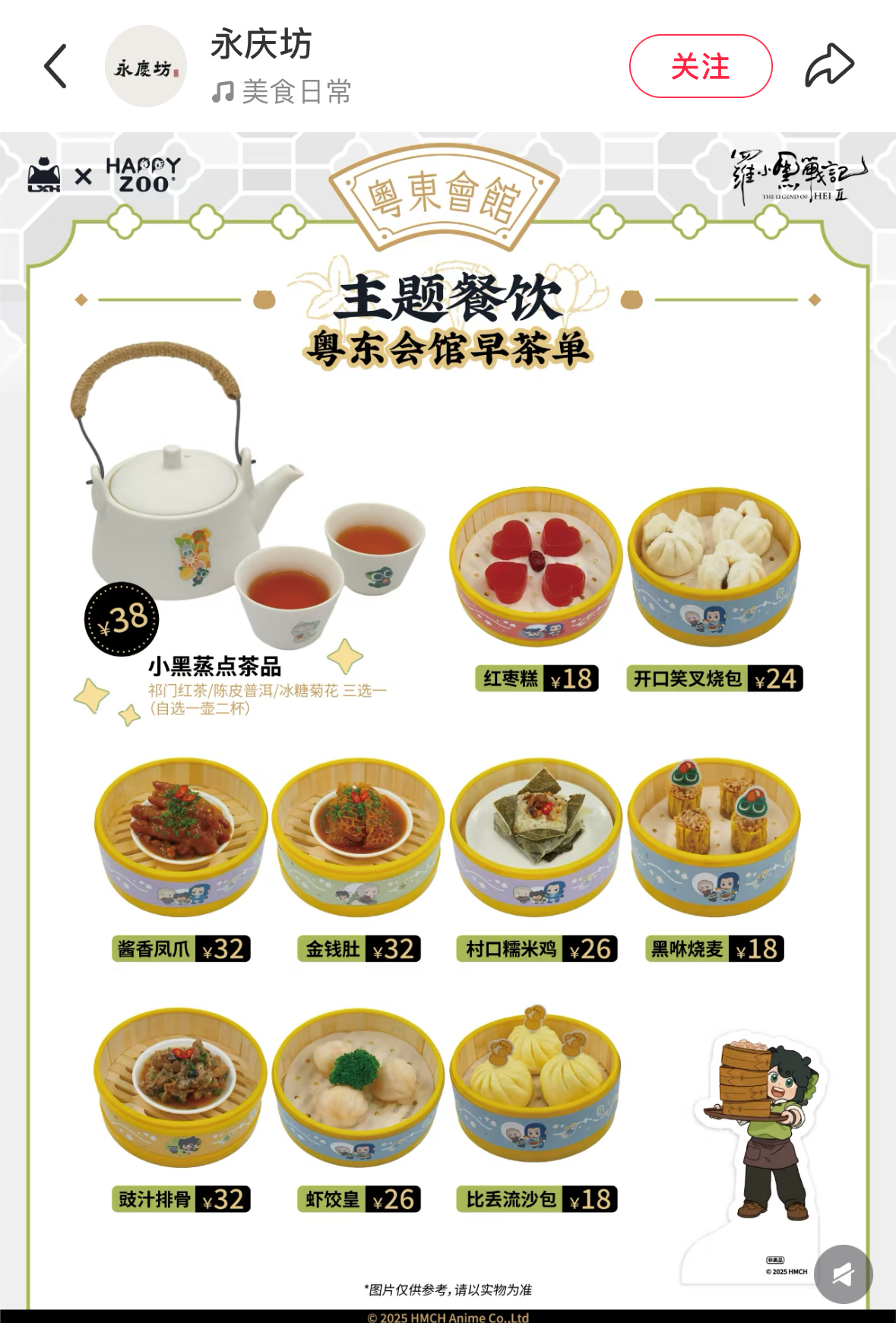 在广州永庆坊,广式点心与二次元IP兑现“破壁交融”。专注二次元的餐饮品牌HAPPY ZOO联袂动画电影《罗小黑战记2》,在5个城市开展“粤东会馆”主题行为,交融国风好意思学与动画IP,推出定制餐饮、法例周边及互动玩法,现在门店预约已全满。